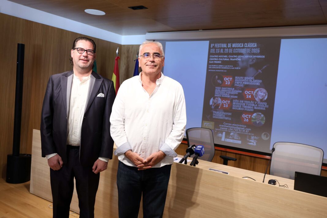 El Centro Cultural Trapiche de Guadaiza albergará desde mañana jueves, día 23 de octubre, y hasta el domingo 26 el VIII Festival de Música Clásica, cuya programación contempla cuatro conciertos de distintos estilos e instrumentos ofrecidos por jóvenes artistas andaluces. El director general de Cultura de San Pedro Alcántara, José Antonio Moreno, ha presentado esta actividad y ha destacado que “se trata de un magnífico escaparate para que los nuevos talentos tengan su oportunidad y su espacio”. Además, el representante municipal ha subrayado “la apuesta por la calidad y la diversidad de esta iniciativa, acercando la música clásica a un público fiel que disfruta de propuestas de primer nivel” y ha agradeció la implicación del promotor musical Shane O´Shea, “que desde hace cinco años, colabora estrechamente con nosotros para hacer posible este festival”.