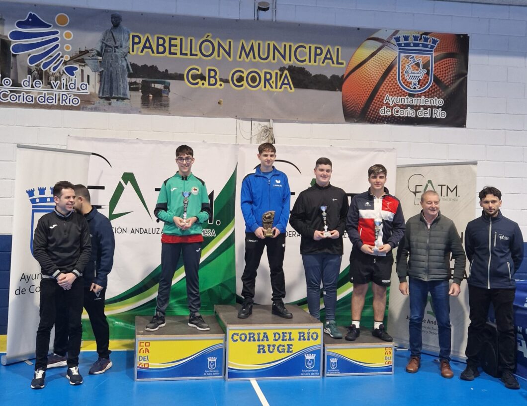 El jugador del CTM Marbella «Cristian Sánchez» cierra el año con buenas sensaciones. El marbellí se ha proclamado campeón de Andalucía en categoría cadete. Sánchez llegaba a Coria del Río convaleciente al encontrarse enfermo. Poco a poco fue mejorando su estado y no tardó en mostrar su potencial. En cuartos de final superaba a Javi Galán de Jerez por 3 a 0, en semis liquidaba a Dani Iañez de Vegas del Genil por 3 a 0 y en la final tocó sufrir para hacerse con el título regional. Tras ir ganando 2 a 0 a Marcos de Cartama, se puso el encuentro (2 a 2 y 3,8 en contra), a partir de ahí , el marbellí remontó ese marcador para terminar ganando 3,2 y 11,9.