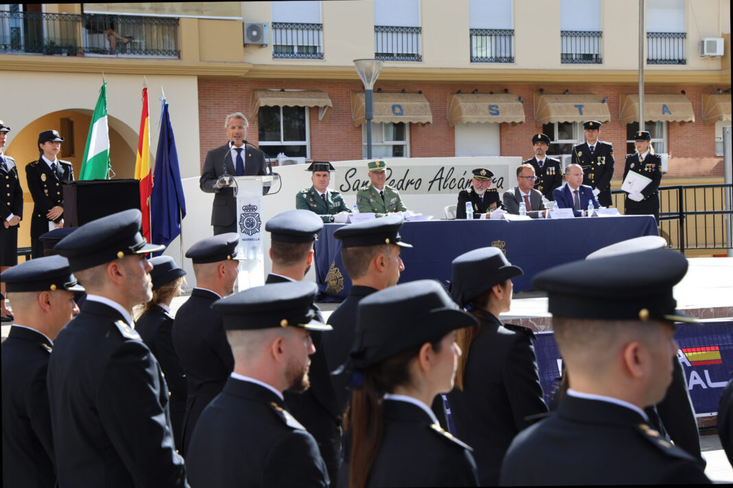 La conmemoración del Día de los Ángeles Custodios, patrón de la Policía Nacional, se ha celebrado con una misa y un multitudinario acto institucional en la plaza de la Iglesia. Durante su intervención, el comisario de Marbella, José Manuel Rando, ha valorado que durante este año “nuestra obligación para con la sociedad se ha cumplido con dignidad, logrando un aumento significativo de la eficacia policial y una reducción acentuada de las situaciones más graves”, al tiempo que ha agradecido al Ayuntamiento “su apoyo constante, que permite reforzar la seguridad y consolidar a la ciudad como destino turístico seguro”.