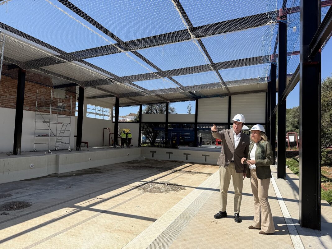 El Ayuntamiento continúa desarrollando la segunda fase de las obras de la piscina municipal de Las Chapas, centrada en el cerramiento y la cubrición de la instalación. La alcaldesa, Ángeles Muñoz, ha visitado los trabajos junto al director general del distrito, Carlos Alcalá, y ha señalado que han entrado en su recta final, en una actuación quecontempla la instalación de una cubierta de gran formato sobre el vaso ya ejecutado.