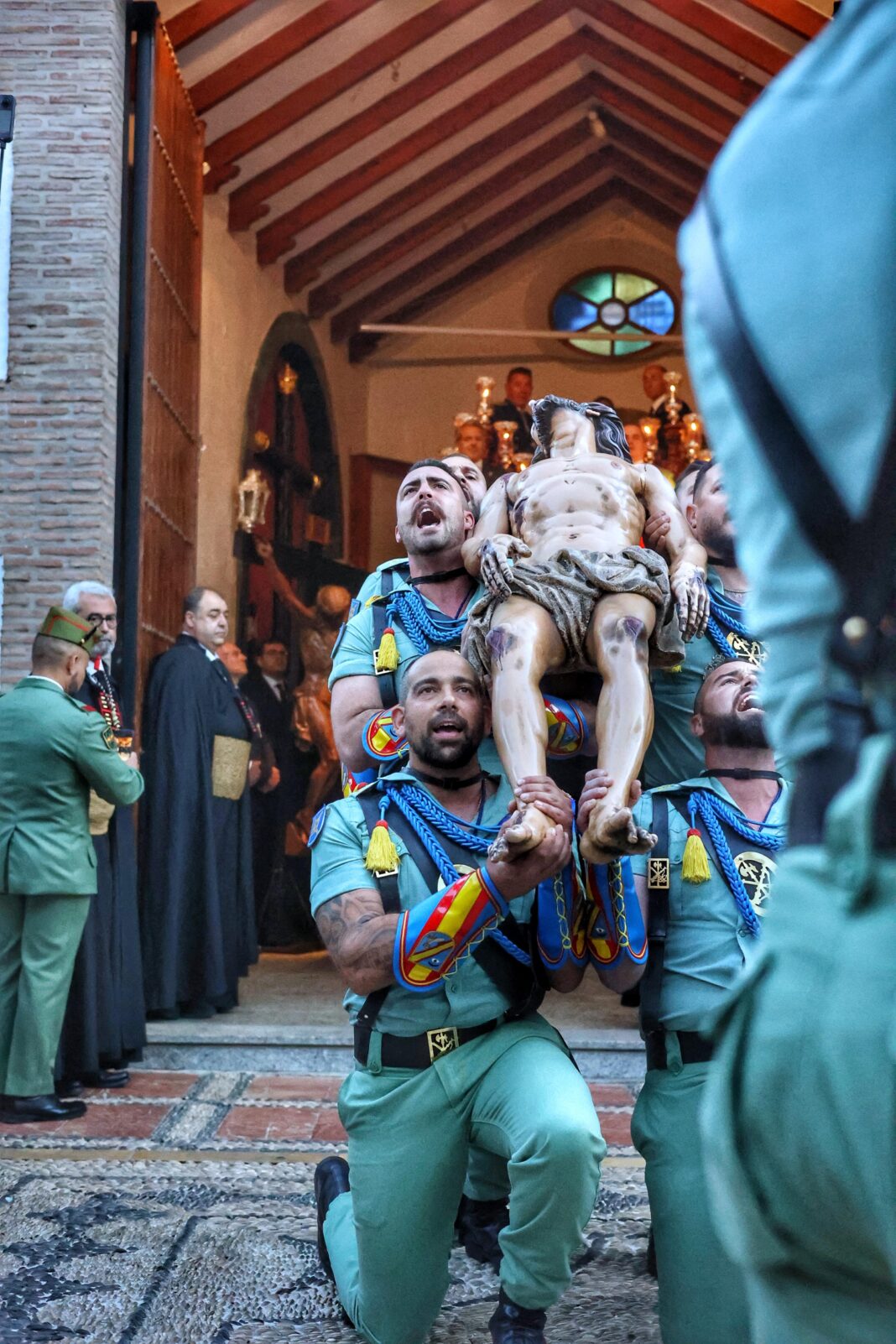 La Legión volvió a protagonizar uno de los momentos más emotivos de la noche con el traslado a hombros del Yacente en una procesión seguida por numerosos vecinos y visitantes