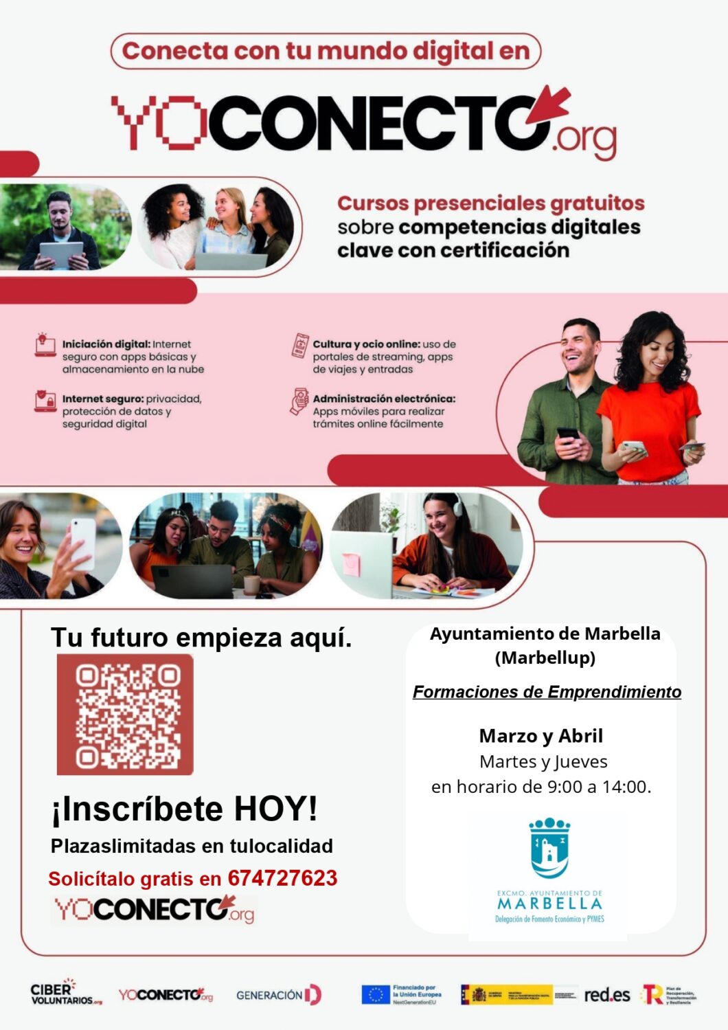 Con esta nueva fase, el Ayuntamiento amplía el alcance de la formación a la población adulta, ofreciendo seis cursos de empleabilidad y seis de emprendimiento que se impartirán en Marbellup en horario de 9.00 a 14.00 horas. Las formaciones serán completamente gratuitas y las personas interesadas podrán inscribirse a través del código QR habilitado en el cartel oficial. El objetivo, según ha explicado Freijo, es dotar a la ciudadanía de herramientas digitales prácticas que mejoren su acceso al mercado laboral o les permitan impulsar su propio proyecto empresarial.
