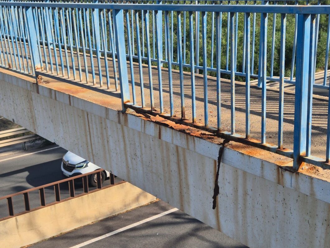 Todas estas pasarelas presentan barandillas corroídas, tornillería inestable, zonas oxidadas, tablones o rejillas deterioradas, ausencia de repintado y señales prácticamente ilegibles. En algunos casos, según los informes trasladados por el propio Ayuntamiento, apoyarse en las barandillas supone un riesgo real para cualquier persona, especialmente niños y personas mayores.
