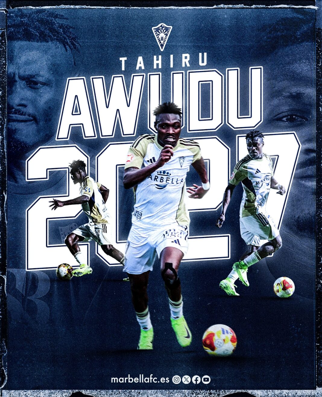 Tahiru Awudu amplia su comprimo con el Marbella hasta 2027. El extremo ghanés padece una rotura del menisco externo de su rodilla izquierda y será intervenido mañana viernes por el jefe de los servicios de la entidad ‘Vicente de la Varga’.