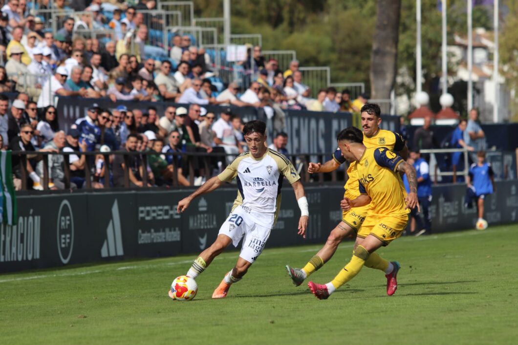 Al Marbella le costó mucho reaccionar tras el tanto, los blancos abusaron del centro lateral y Rodri estaba muy dividido entre dos centrales de envergadura.