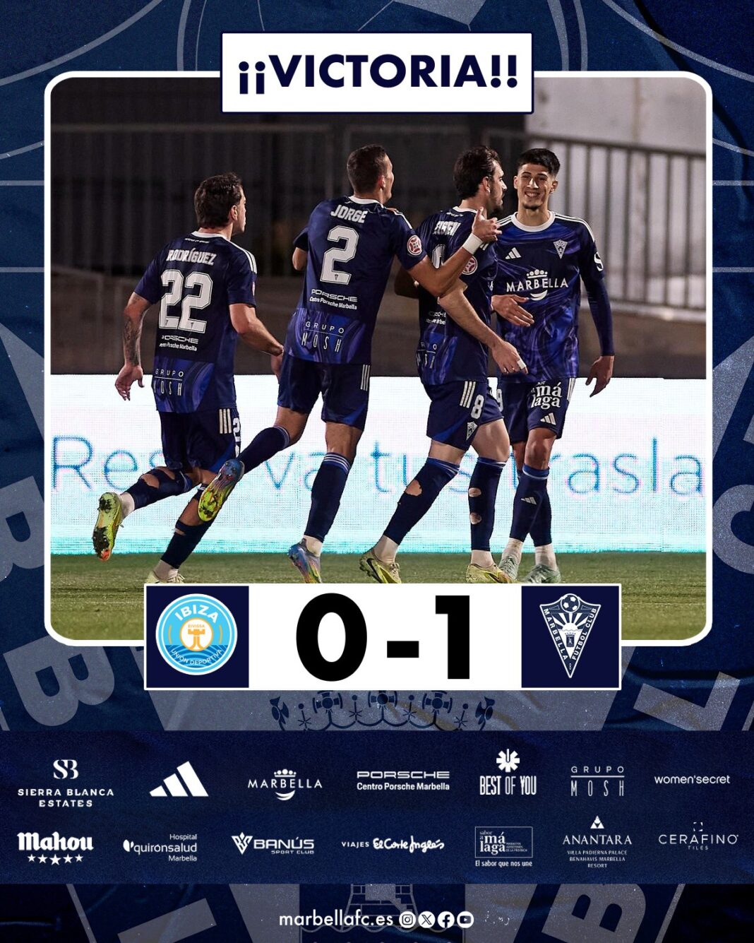 El último cambio era Alexiel por Ohemeng. Tras siete minutos de añadido, el Marbella se alzaba con la victoria en Can Misses, la primera que logra desde la última fundación del club. Se quedan a 9 puntos del puesto de salvación y recibirán al Sevilla Atlético el próximo domingo a partir de las 12:00 horas en la Dama de Noche.