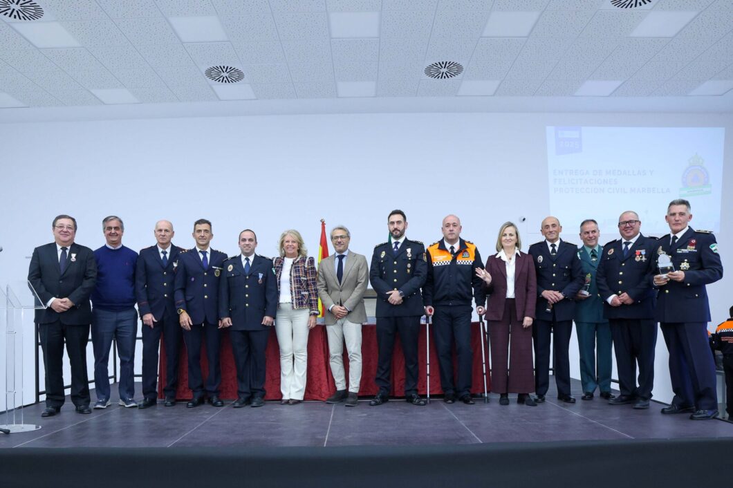 ​En el evento, que ha contado con la presencia del concejal del ramo, José Eduardo Díaz, y del jefe de la agrupación local, Francisco Javier Flores, se ha distinguido a Víctor Cabrero con la Medalla de Permanencia por 15 años “de trayectoria ejemplar y constante” y a Francisco Jesús Gallardo, inspector de la Policía Local; a Manuel Sánchez González, sargento del Servicio de Extinción de Incendios; Darío Carbonero, inspector jefe de la UPR; Virginia Sanjuán Mogin, directora del Sistema de Explotación Costa del Sol Occidental; Fulgencio Díaz, director ejecutivo de Hidralia en Málaga y a la empresa Siebla con las Medallas de Homenaje y Colaboración. Además, se ha distinguido al voluntario de la agrupación de Antequera Francisco de Asís Sánchez con la Medalla al Mérito por su actuación en el campeonato mundial de Ironman 70.3 celebrado en la ciudad “donde puso en riesgo su propia integridad para proteger a una persona mayor”. Por último, se han entregado placas de agradecimiento y colaboración a Alfredo García, director del Fuerte de Nagüeles; al economato Virgen de la Victoria; a la delegación de Fiestas; al Puerto Deportivo de Marbella; a la Policía Nacional; a la Policía Local y a la Guardia Civil y se ha hecho una felicitación pública por la colaboración de los voluntarios en la Dana de Marbella y el apagón.