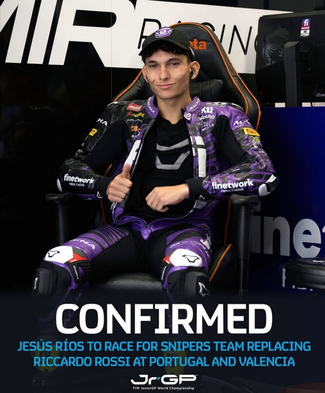 Noticia enorme para el deporte local. La lesión del italiano Ricardo Rossi ha provocado el debut inesperado del marbellí en Moto3. Una llamada ansiada por Ríos que podrá disputar las dos últimas carreras del circuito.