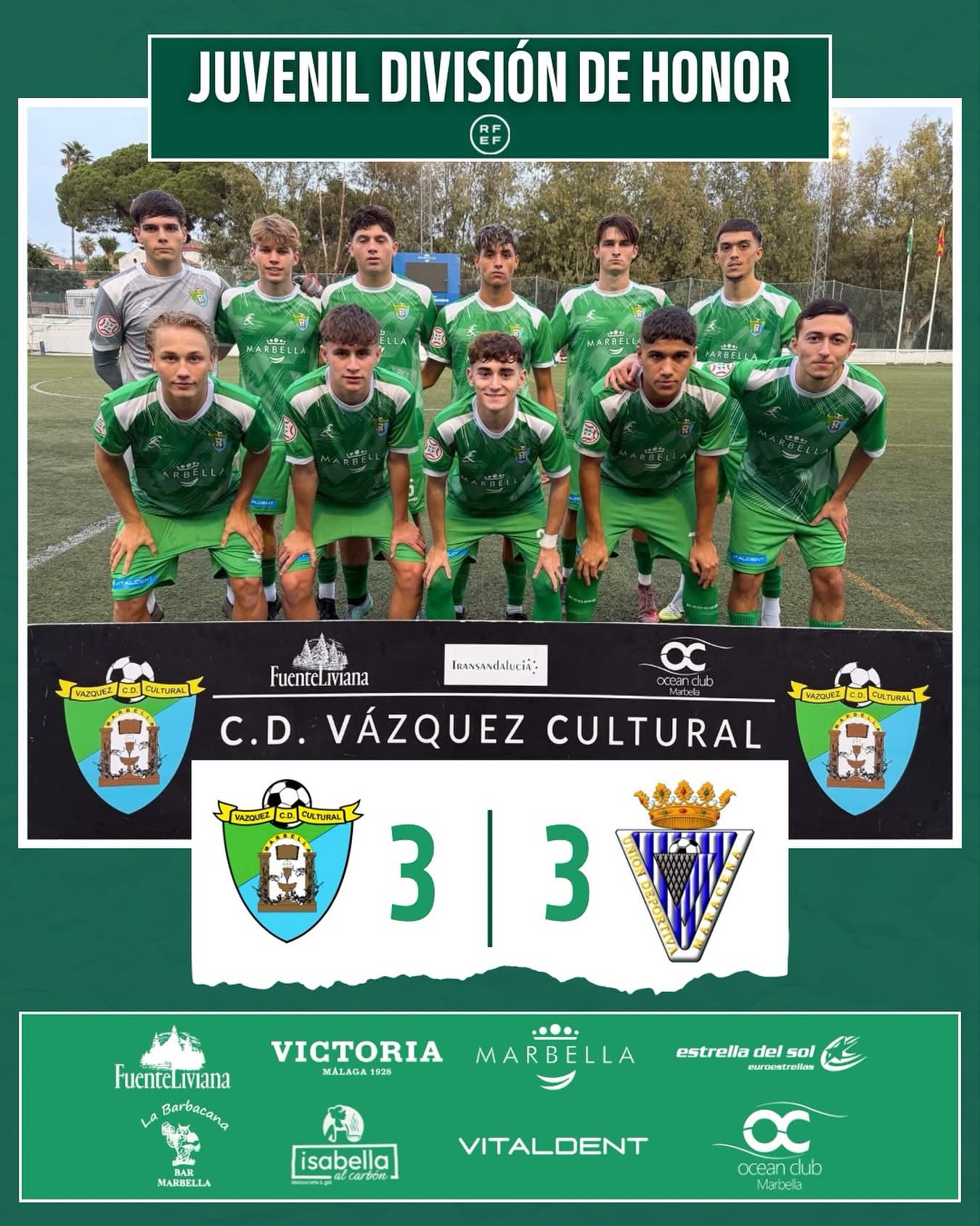Punto insuficiente para los verdes que se llevaban muy poco premio de un partido con gran esfuerzo. Además, los resultados de la jornada no han acompañado y dejan al Vázquez en el farolillo rojo de la clasificación.
