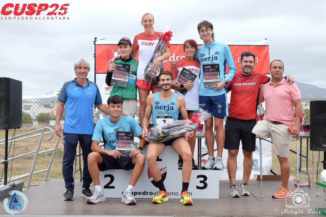 El atleta más rápido de la prueba fue Daniel García Gavilán del Cueva de Nerja, el marbellí cruzo meta en 15:23 con un ritmo de 3:04 al kilómetro. El segundo clasificado fue un atleta junior «Hugo Arias Gallardo», procedente del Cueva de Nerja, logró culminar los cinco kilómetros en 15:56. El podio masculino lo cerraba Pablo Jurado, también del Cueva de Nerja, con un crono de 16:11, atleta junior que se ha formado en las filas del CA San Pedro.