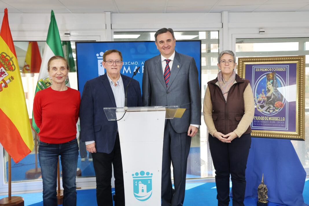 El Ayuntamiento ha respaldado nuevamente la nueva edición de los Premios Cofrades ‘Ciudad de Marbella’, un evento que se celebrará el próximo 20 de marzo, a partir de las 19.00 horas, en el Palacio de Ferias y Congresos Adolfo Suárez, y que volverá a reunir a destacadas personalidades vinculadas a la Semana Santa, la cultura y distintos ámbitos sociales. El acto de presentación ha contado con la participación del primer teniente de alcalde, Félix Romero, junto al director de COPE Marbella, José Antonio Gómez, y miembros de la organización.
