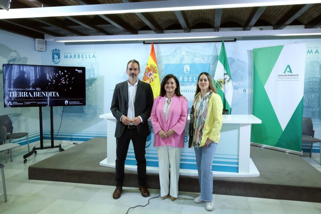 El Teatro Ciudad de Marbella albergará este sábado 26, a las 20.00 horas, el estreno en España del espectáculo ‘Tierra Bendita’, del Ballet Flamenco de Andalucía, con motivo del Día Internacional de la Danza. La directora general de Cultura, Carmen Díaz, ha presentado hoy la propuesta junto al gerente de la Agencia Andaluza de Instituciones Culturales de la Consejería de Cultura y Deporte, Javier Rivera, y la directora del ballet, Patricia Guerrero, y ha subrayado que “es una auténtica satisfacción poder conmemorar esta efeméride de la mejor manera, con una formación que es la máxima representante institucional del arte jondo y con la que llevamos contando desde la puesta en marcha de TodoDanza en 2009”. Ha indicado que “siempre es una celebración y una explosión de energía desde el patio de butacas, porque nos permite disfrutar de la belleza de este arte universal con una mirada contemporánea y vanguardista”, al tiempo que ha precisado que “es un magnífico preludio del festival, que tendrá lugar en otoño”.