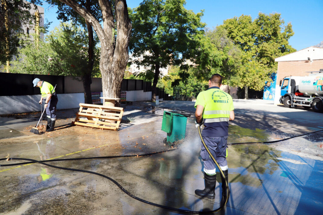 Esta intervención, que se desarrolla desde el pasado día 1 y hasta el 9 de septiembre, cuenta con una treintena de operarios y conductores, además de ocho vehículos de agua a presión y cuatro barredoras de gran capacidad, entre otros medios técnicos
