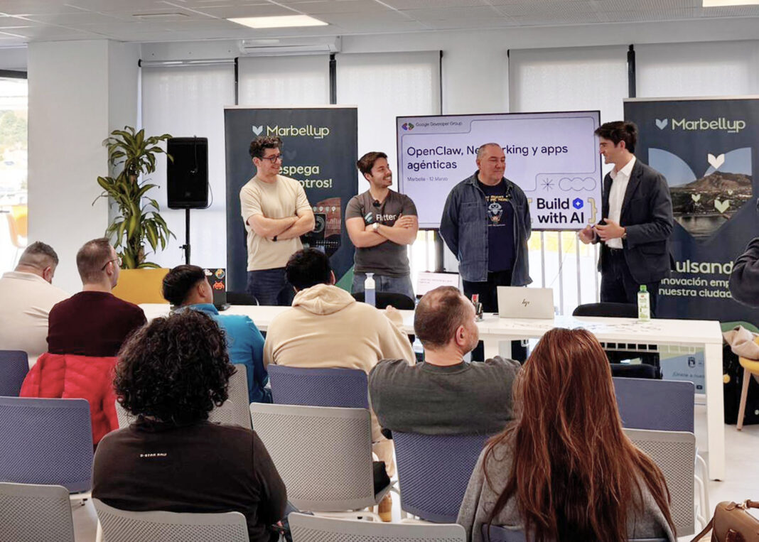 El espacio Marbellup ha acogido una jornada técnica sobre inteligencia artificial aplicada al desarrollo de software dentro de la iniciativa internacional #BuildWithAI, promovida por Google Developer Group (GDG) Marbella junto con la delegación de Fomento Económico y PYMES. El taller, titulado ‘Apps agénticas con Flutter y Gemini’, reunió este jueves a desarrolladores, ingenieros y alumnado interesado en profundizar en el uso de IA generativa para crear aplicaciones capaces de ejecutar tareas de forma autónoma. Durante la actividad, los participantes trabajaron en la creación de herramientas digitales mediante Flutter destinadas a entornos móviles y web, integrando funciones de Google Gemini.
