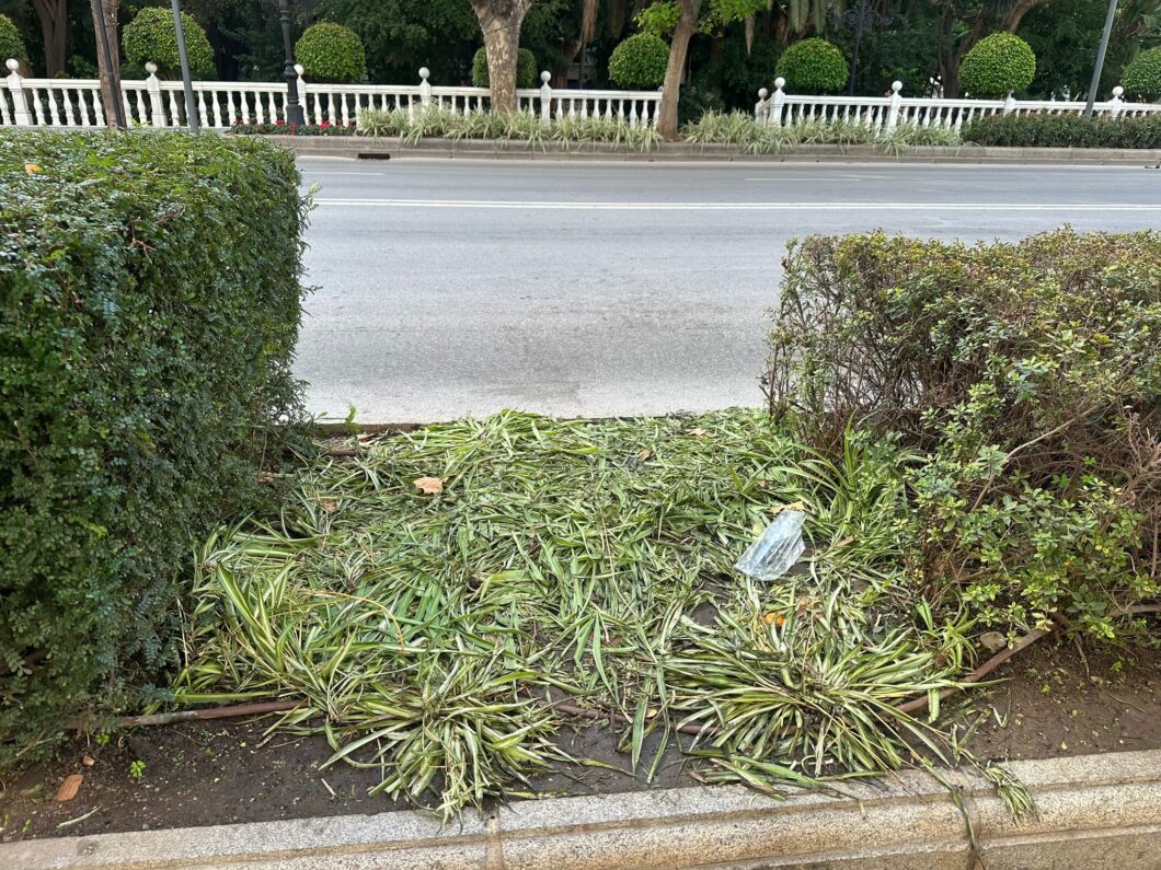de los contenedores y que se deposita en jardineras, envases abandonados sobre el