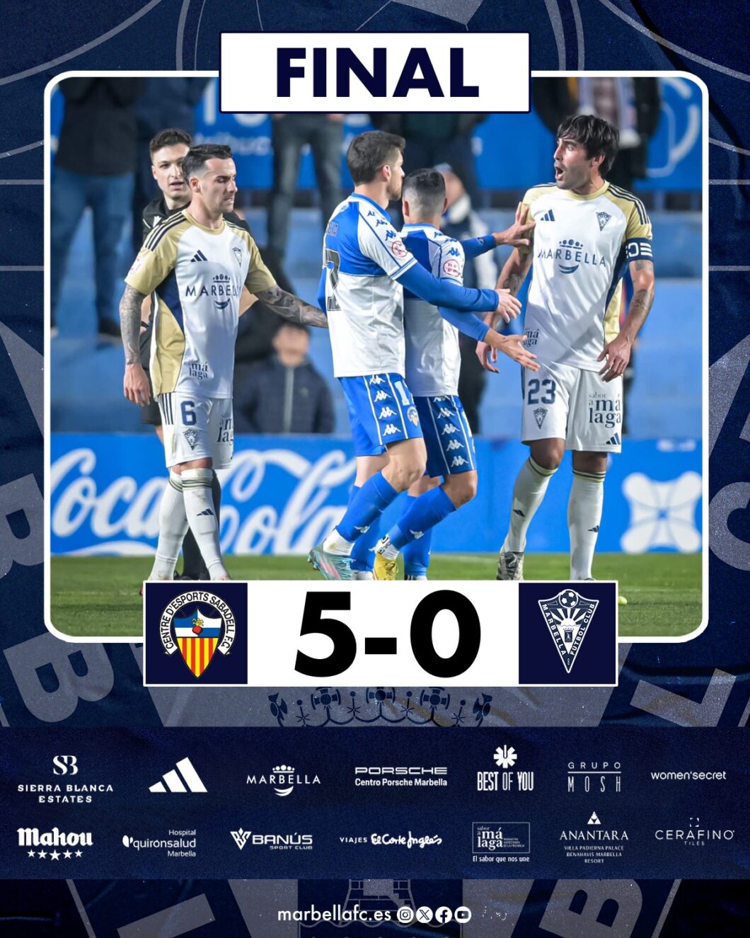 Bochorno espantoso en la Nova Creu Alta. El Marbella ha sido arrollado con mucha facilidad ante el líder. La fragilidad en defensa de equipo ha sido muy notable y ha concedido muchas facilidades al rival. El cuadro arlequinado se marchó al descanso con 3-0 en el marcador y el partido perdido. Vassi evitó en la segunda mitad que el resultado fuera más allá de la manita, el Marbella cierra la jornada colista a 8 de la salvación.