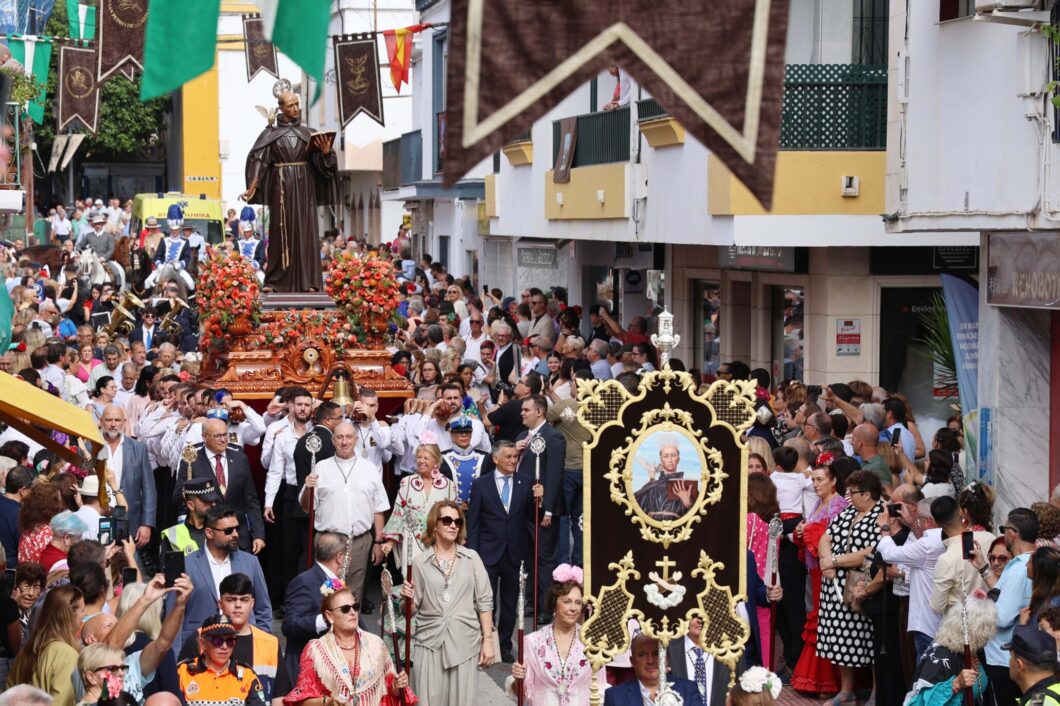 San Pedro Alcántara vivió ayer con intensidad el día de su Santo Patrón, en el marco de una feria que desde el martes está congregando a numerosos vecinos y visitantes. La alcaldesa, Ángeles Muñoz, ha participado en la Solemne Misa celebrada a las 11.00 horas en la parroquia, y en la tradicional procesión, que ha tenido lugar posteriormente por las calles de la ciudad. La regidora ha destacado “la devoción y el arraigo que esta festividad representa para los sampedreños, así como la implicación de los ciudadanos en cada uno de los actos que se desarrollan con motivo de la semana grande”. Ha resaltado también que “está siendo una semana intensa, con una feria muy participativa y segura, en la que la gente está disfrutando muchísimo”. En este sentido, ha afirmado que “la gran afluencia está siendo constante y la organización está funcionando perfectamente, con amplias zonas de aparcamiento, un dispositivo de seguridad eficaz y un recinto ferial muy bien estructurado».
