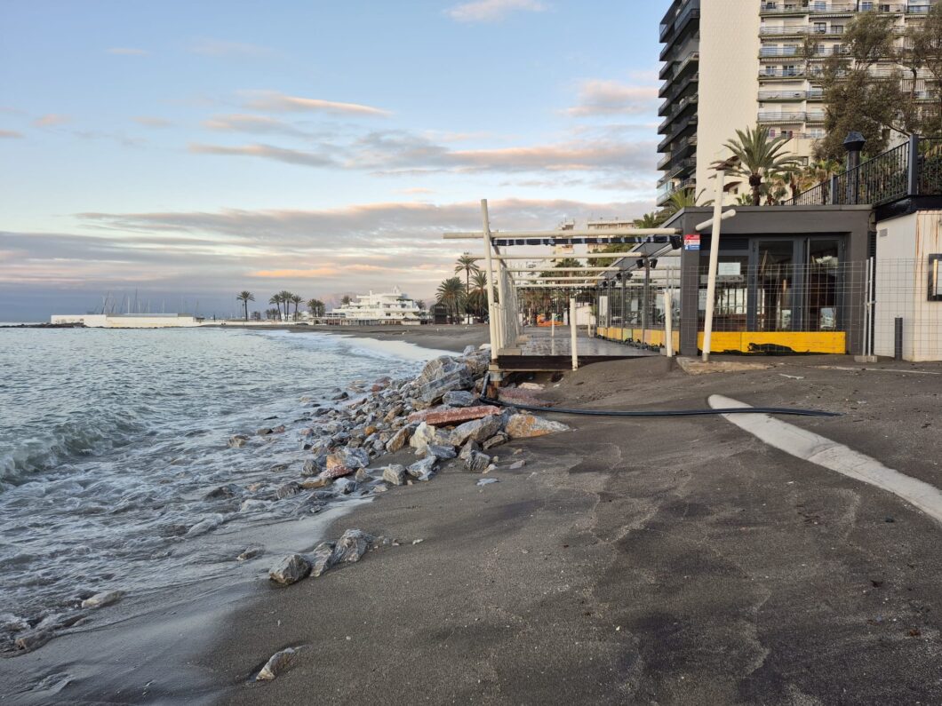 El fuerte temporal de mar registrado este fin de semana ha vuelto a evidenciar una realidad que Marbella arrastra desde hace años: la absoluta falta de compromiso del Gobierno de España con la protección y regeneración de su litoral. Las playas de La Bajadilla, varios tramos de Las Chapas y zonas especialmente sensibles de Nueva Andalucía han sufrido importantes daños como consecuencia del intenso oleaje, dejando una estampa que se repite cada vez que el mar se embravece.