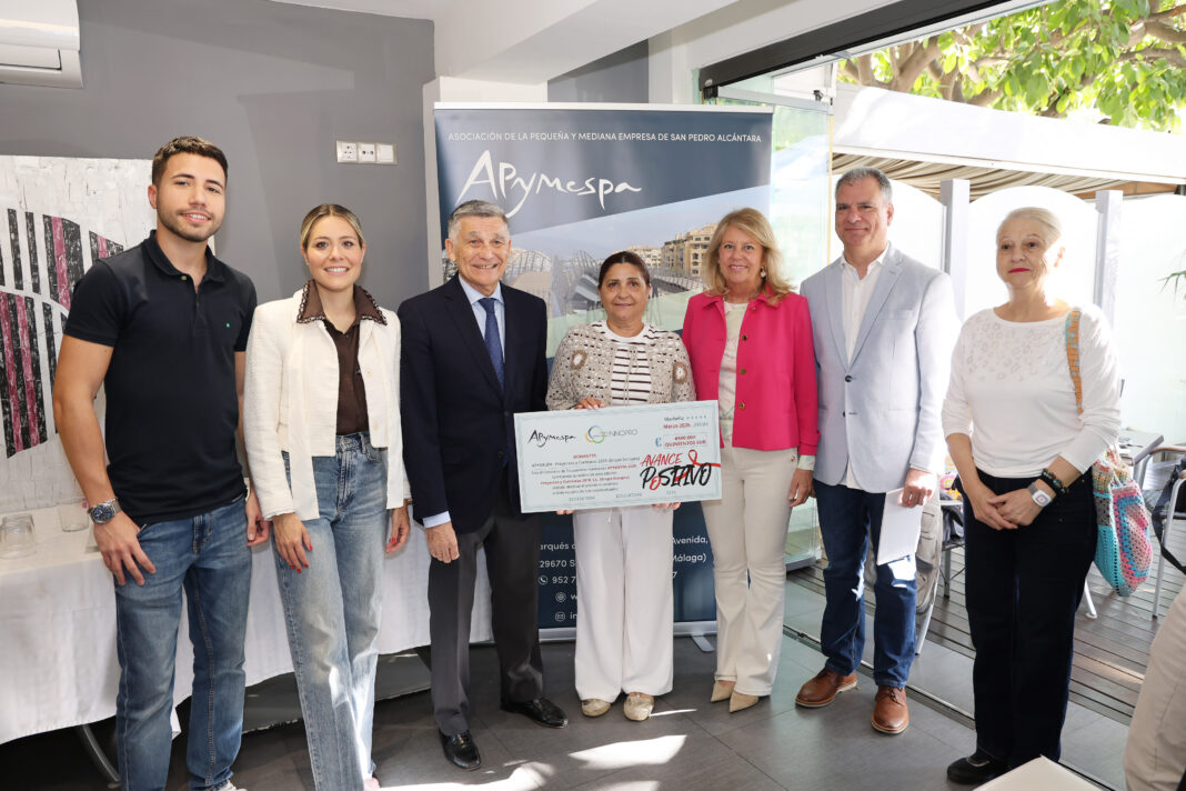 La alcaldesa, Ángeles Muñoz, ha asistido hoy a un encuentro de ‘networking’ organizado por la Asociación de la Pequeña y Mediana Empresa de San Pedro Alcántara (Apymespa), una cita que ha congregado a más de medio centenar de empresarios con el objetivo de fomentar la colaboración y el intercambio de experiencias dentro del tejido productivo local. La jornada ha tenido también un componente solidario con la donación por parte de uno de los socios del premio de mil euros que obtuvo como ganador del reciente concurso de escaparates a las entidades Valores y Avance Positivo.