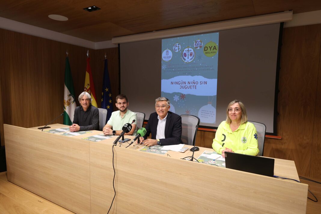 La Tenencia de Alcaldía de San Pedro Alcántara respalda la tercera edición de la campaña ‘Ningún niño sin juguete’ para trasladar la ilusión a todos los hogares en estas Navidades. La iniciativa está impulsada por el Grupo Joven de la Cofradía Nuestro Padre Jesús Nazareno y María Santísima de la Soledad, en colaboración con la entidad DYA (Detente y Ayuda), y tiene como fin atender a las familias en situación de vulnerabilidad del municipio, esperando alcanzar a unos 120 menores. El teniente de alcalde sampedreño, Javier García, ha destacado durante un acto al que también ha asistido el asesor de Derechos Sociales, Juan José Almagro, “el gran trabajo” que desarrollan ambos colectivos y ha instado a la ciudadanía a sumarse a esta acción solidaria.